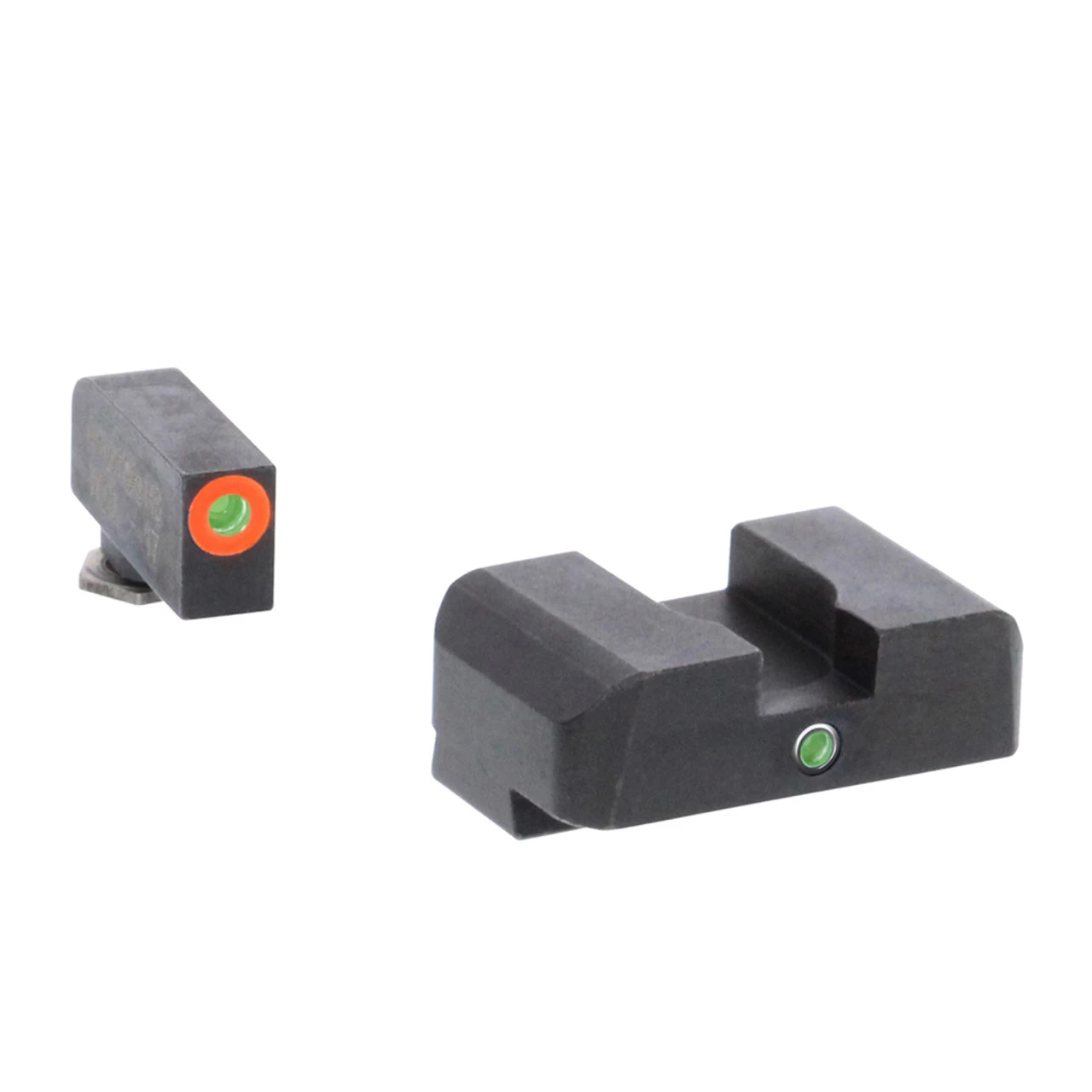 The AmeriGlo I-Dot Pro Night Sights are an excellent way to add low-light capability to your handgun. This sight set with Green Tritium Orange Outline lamp front, one Green Tritium Single Dot lamp rear (centered below notch) for Glocks. Designed for simple front sight acquisition while retaining rear illumination.