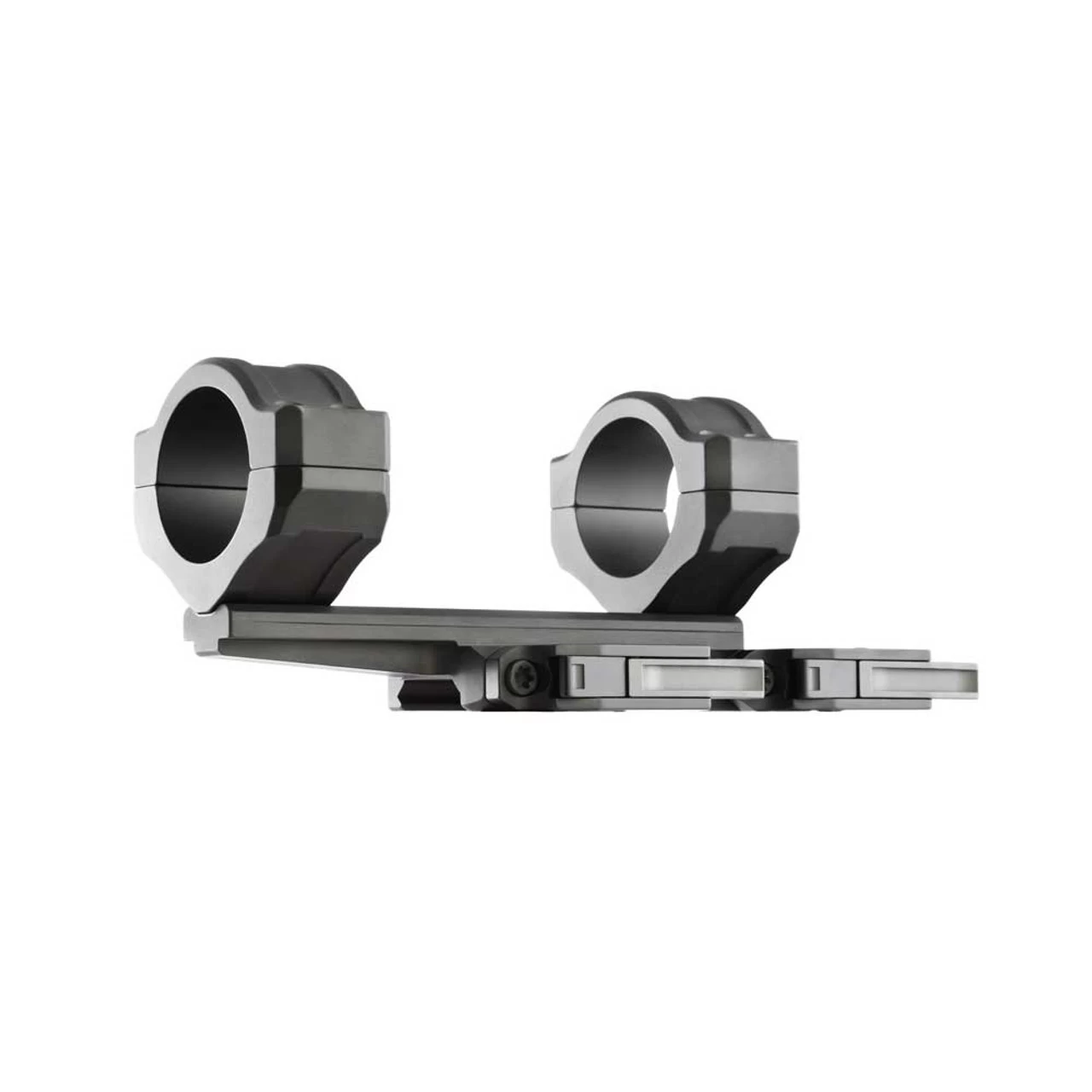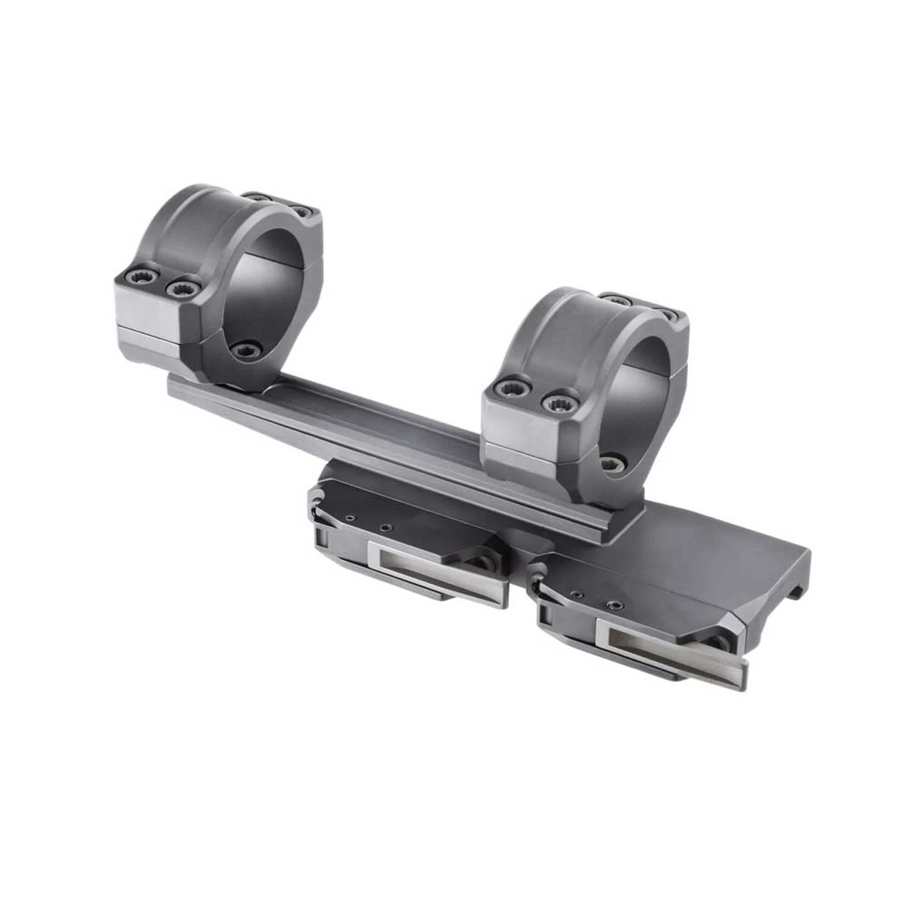 The Dual Lever series of precision optics mounts features the Patented (US Patent 8,567,105) BLAC™ lever system and are engineered for larger diameter scopes. The base has an extension that allows proper eye relief, even when using a non-monolithic rail. It is designed so that the base allows the use of a folding back up iron sight (BUIS). The structure is designed for maximum strength, and utilizes larger fasteners than our standard lineup. This mount is engineered to handle heavy optics and high recoil forces. It is offered in both 0MOA and 20MOA cant