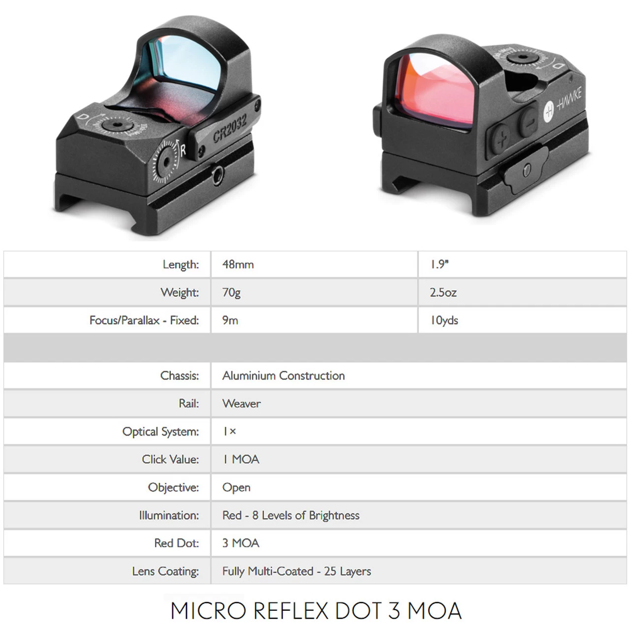 Product Info for HAWKE Sport Optics 1x Micro 3 MOA Reflex Sight 12141