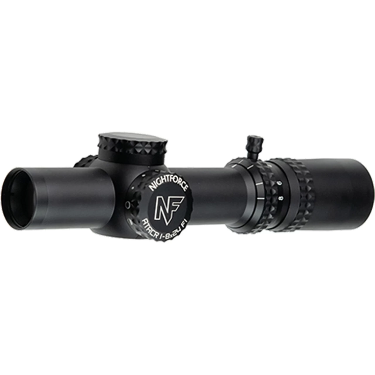 The ultimate in low-power, high-zoom ratio riflescopes, the Nightforce ATACR 1-8x24mm features pristine ED glass, low-profile adjustments and legendary bomb-proof reliability. It comes equipped with the FC-DMx reticle, the next step in evolution to the FC-DM reticle. This reticle has a thin, 4 MRAD segmented circle and has the daylight-bright illumination for use in any conditions. The open circle area allows for a clear, unobstructed view of the target, and the 0.2 MRAD center dot provides a precise aiming point. In addition, a 1 MRAD resolution aiming grid allows for simultaneous of elevation and wind with 10 MRAD of elevation.